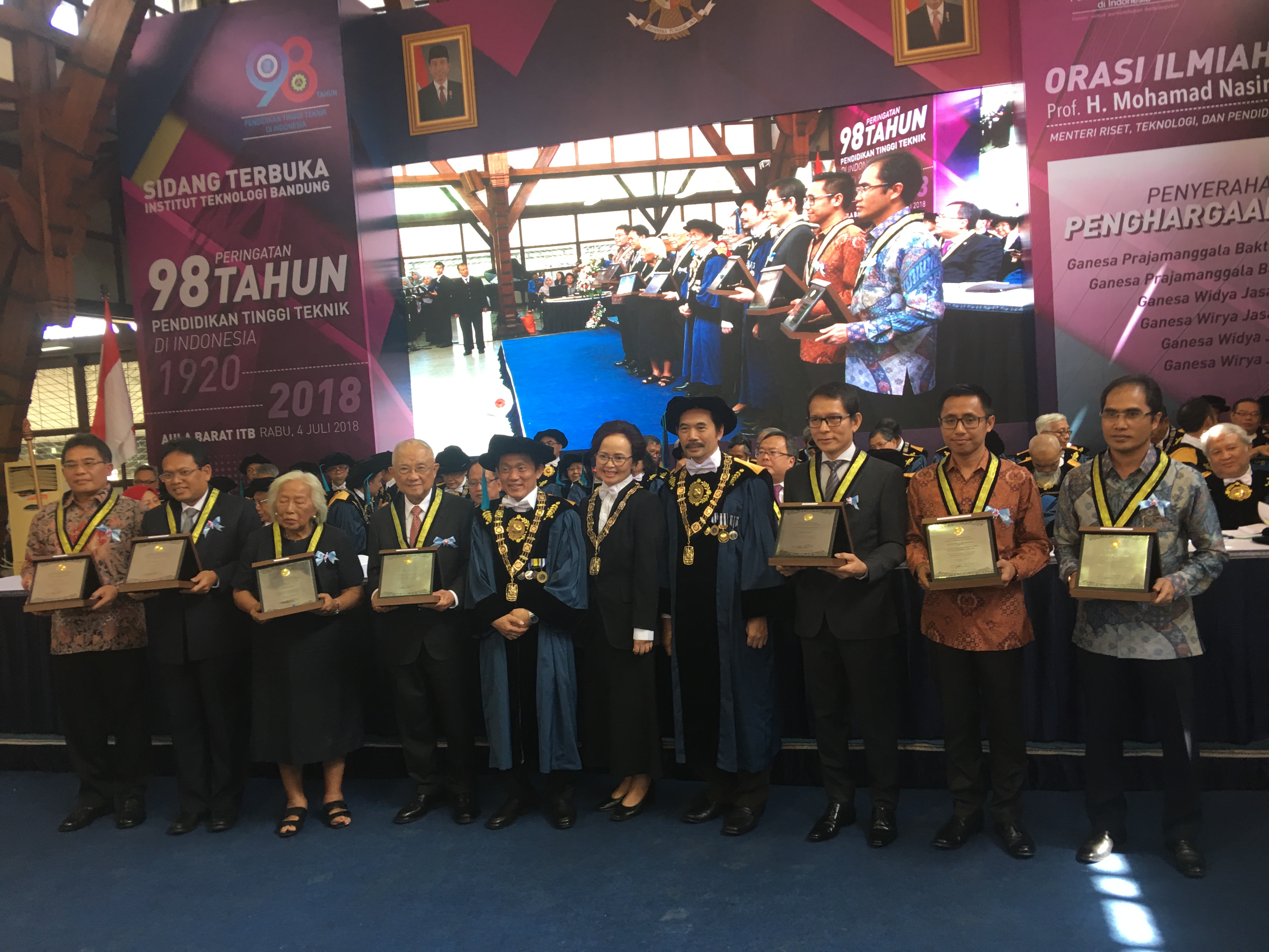 Rektor ITB Kadarsah Suryadi menyerahkan penghargaan ITB kepada pihak-pihak dan institusi yang telah menunjukkan kepada pihak yang telah menunjukan jasa dan atau prestasi menonjol dalam melaksanakan kegiatan pengembangan Ilmu Pengetahuan dan Teknologi di tingkat internasional, nasional dan atau di kalangan civitas akademika ITB (4/7).